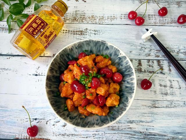 吃惯了菠萝咕噜肉,试试樱桃咕噜肉,仿佛打开了新世界一般。红红的果子和金黄的肉粒,带来不逊于菠萝咕噜肉的味蕾体验,让人看了食指大动。而想要做出这样一道美味,需要备好鸡胸肉、樱桃、小葱、姜、蒜头、胡姬花古法小榨花生油、淀粉、鸡蛋、番茄酱、盐、料酒,就能烹饪。