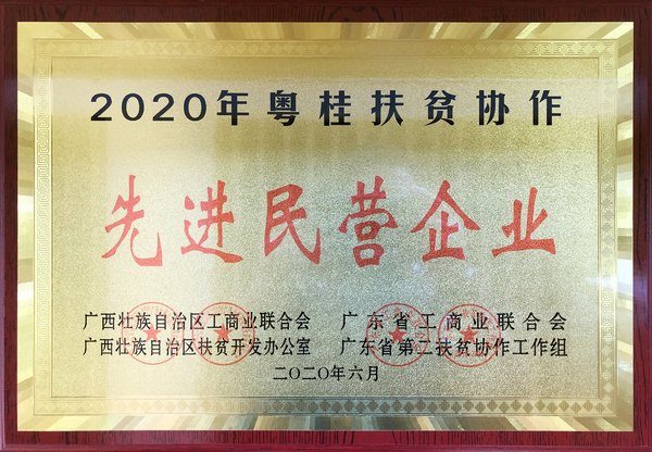 八马茶业获“2020年粤桂扶贫协作先进民营企业”奖牌