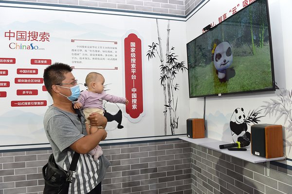 2020年服贸会观众参观中国搜索“5G熊猫慢直播”项目展位 摄影:宋家儒