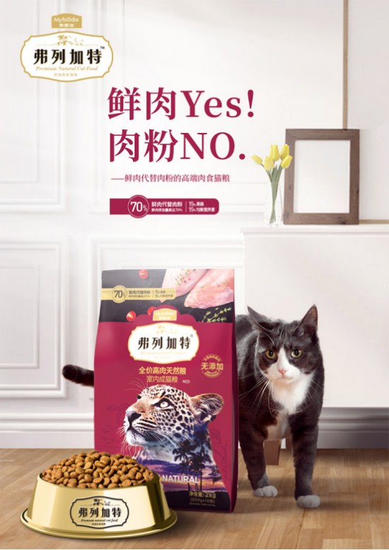 选猫粮还是要选鲜肉的,猫咪才能天生喜欢哦~鲜肉YES肉粉NO!麦富迪新品-弗列加特高端肉食猫粮,精选70%鲜肉代替肉粉,用斩拌机做成细腻的肉泥,避免多次加工造成的食材营养流失,,限度的保留鲜肉中的营养,满足猫咪生长所需。严选GLOBALG.A.P.认证农场的新鲜鸡肉,原料更优质、食材更新鲜,蛋白品质可控制、蛋白来源可追溯。0-4℃低温冷链运输,,程度的保证鸡肉的新鲜度;到厂0-4℃保存,5天内使用完毕。不添加防腐剂,产品包装后采用美国FDA认可的高能物理灭菌技术,有效消灭致病菌,更能避免产生二次污染,猫咪食用更健康。