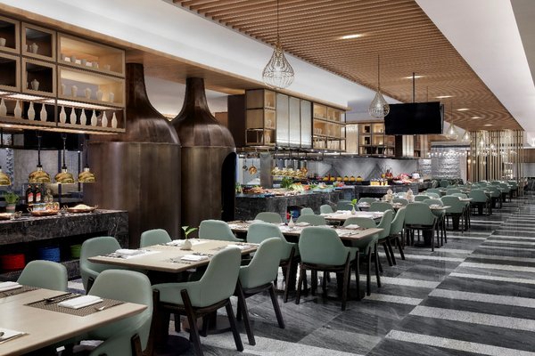 酒店拥有6间独具风格餐厅和酒吧,是宾客悠享惬意时光的理想之所。其中,悦馐全日制餐厅以云南文化特色为设计灵感,运用扎染、图腾、麻绳以及竹子等材质打造别出心裁的用餐空间。1750平方米的餐厅可容纳近600位宾客,敞亮的开放式厨房则成为大厨们烹制诱人佳肴的舞台,为您呈现出甄选的丰盛新鲜食材,奉上味蕾和视觉的双重满足。此外,喜来登行政酒廊拥有时尚的空间设计,为入住行政楼层的宾客和尊贵的万豪旅享家会员提供商务洽谈和聚会休闲的品质之选。