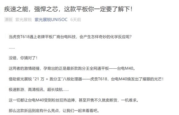 先跨过性能参数不讲,其实在台电M40未开售前,就有多家垂直媒体选择为其背书。同时行业大佬紫光展锐认为,台电代表着耕耘的中国品牌,能在竞争激烈的主流市场稳住脚跟,并赢得用户喜爱,与自身秉承的匠心、正青春、精益求精品牌理念不可分割,更主要还是对于产品负责,能在擅长领域,化发挥品牌特性,这点实属难得。