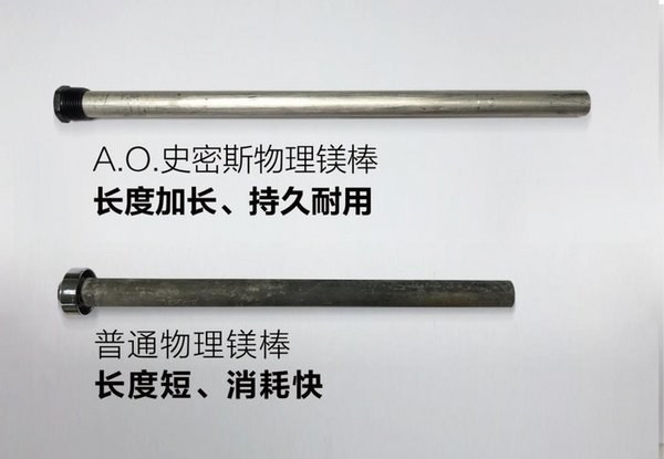 但有的热水器为了解决成本,配备的阳极棒比较短小,对内胆的保护作用也就相对较弱。A.O.史密斯的阳极棒远长于普通标准。更长则意味着对内胆的保护作用更强,又同时延长了更换周期。