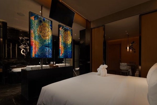 宾客抵达酒店之时,便会即刻沉浸于3D投影影像、音乐和灯光技术的艺术表达共同营造出的多重感官体验。酒店拥有59间客房和套房,其空间设计大胆创新,11种风格各异的主题为宾客营造出截然不同的沉浸式体验,让每一次入住都成为激发灵感和想象的探索之旅。所有客房均配有先进的可调节情境照明、室温控制和内置蓝牙音响系统,以及一应俱全的待客设施,包括高等级床品、液晶电视、茶水和咖啡设施、迷你吧等。同时大部分的客房有独立浴缸和淋浴。