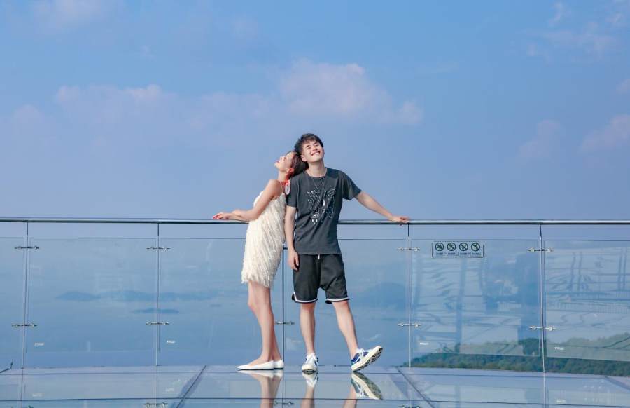 巨石山520玻璃观景台位于“石猿问天”的,峰,玻璃上倒映着天空中的朵朵白云,让我们在云端上漫步,因此也被称为“云上平台”,有情人站在这里,无论从那个角度看都是爱你的样子,随便摆个姿势,都是仙气十足的。
