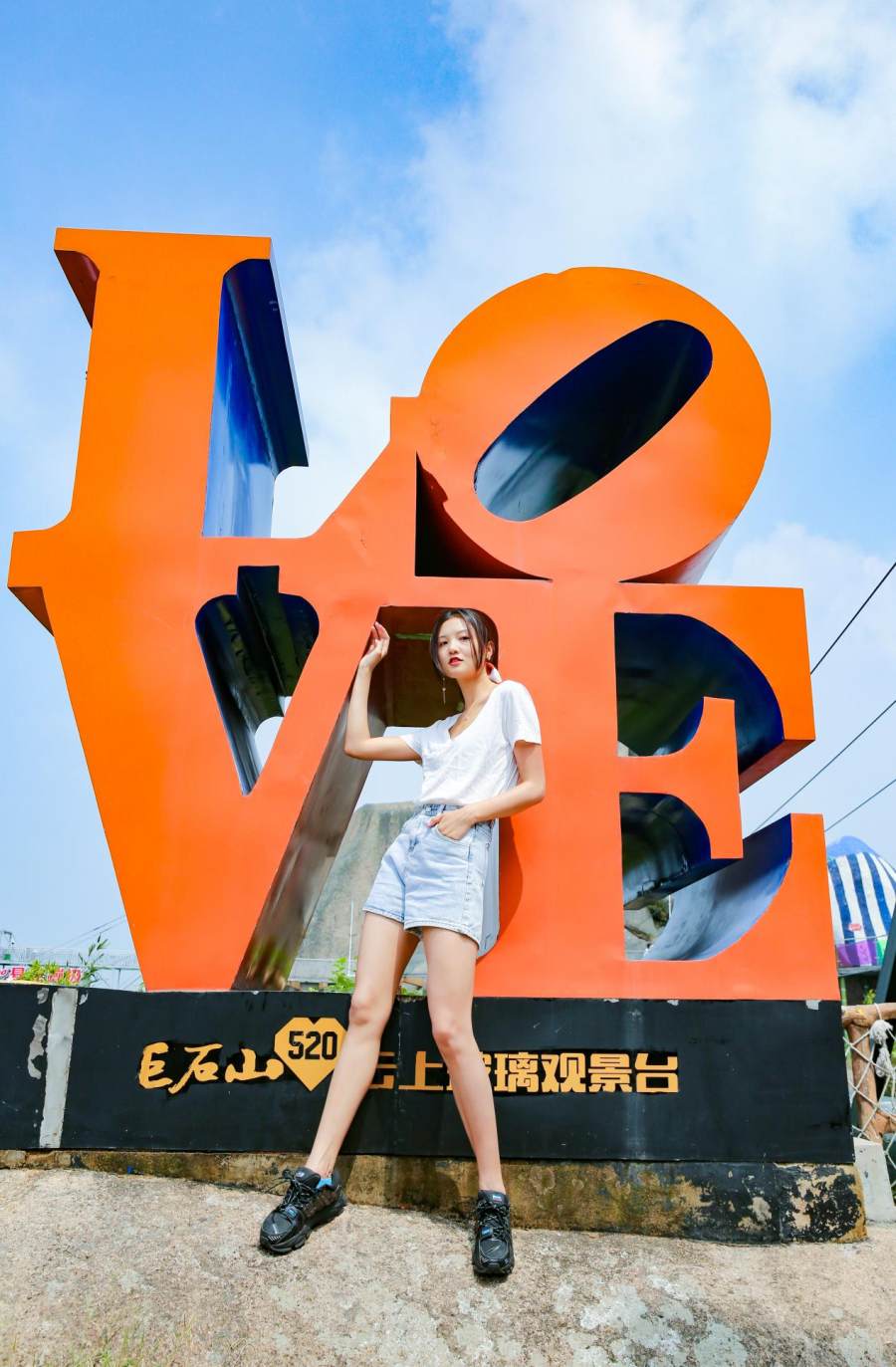 巨石山“love”雕塑旁,超过悬崖高度150米处,高高耸立着一架数十米的秋千,被推出去的瞬间,张开双手,一起去拥抱天空,风长发被佛起精巧的弧度,显得画面是如此唯美。