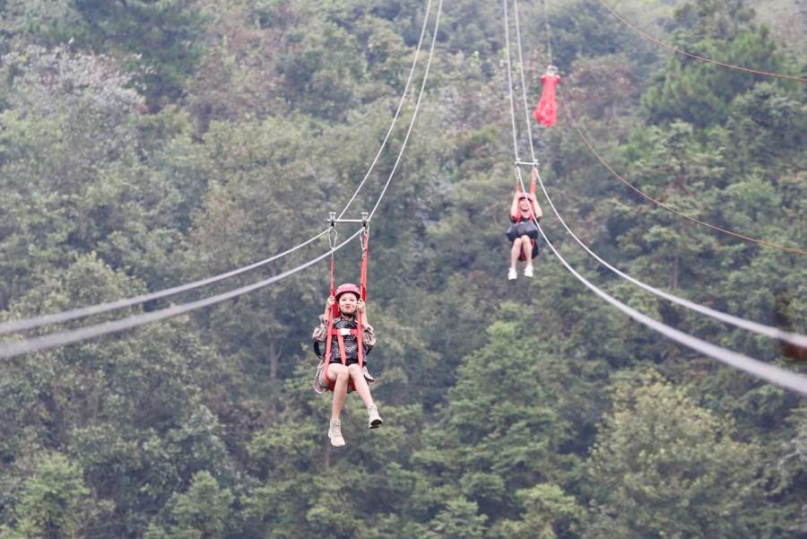 从“织女峰”到“牛郎峰”,有一道520米长度的高空滑索,从峰顶急速下滑飞翔,穿索过山谷,留下久久不能平息的呐喊声,我想在这两峰中间其实也算是座鹊桥吧,毕竟牛郎和织女不也在此停留吗?