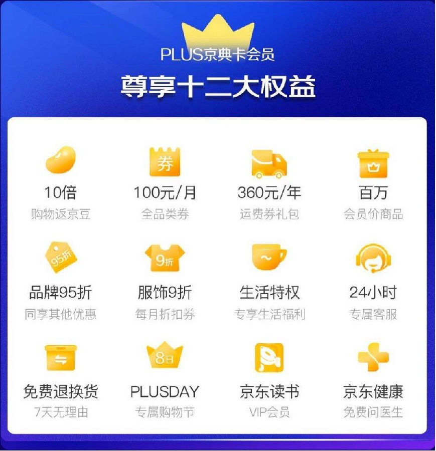 除了超值观影福利之外,凭借超级电影卡还能享受到京东PLUS会员的重磅福利。京东PLUS京典卡会员可享受12大权益,包括10倍购物返利、全年360元免运费券、百万专享价商品、每月100元优惠券礼包、24小时专属客服、京东读书VIP、免费在线问诊等会员专享福利,每年平均购物能省1847元。除此外,PLUS会员业务与Costa、汉堡王、DQ、学而思、美豪酒店等各大品牌联合推出定制权益,例如Costa咖啡买一送一、汉堡王天天半价、学而思3800元免费课程等,会员可享受餐饮、出行、娱乐、教育等各领域生活特权。每月8日是京东PLUS会员专属狂欢购物节,可以享受全场PLUS会员专属折扣、专享赠品、低价秒杀等专属福利。此次与万达电影的合作是在电影权益领域的又一大突破,进一步拓展了PLUS会员权益版图。