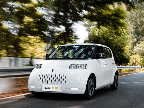 从侧面看,欧拉白猫有点类似日本K-car的造型,AB柱以及C柱上的黑色元素设计,也营造出了悬浮式车顶的设计。如果有同样被白猫萌到的网友,强烈建议将C柱也贴成黑色,,别有一番风味。