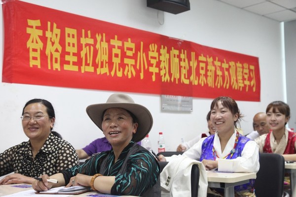 2012年7月,新东方组织19位独克宗小学教师赴北京学习。2019年,新东方资助学校55名女童就学,8月新东方公益基金会组织学生代表赴北京参加新东方春蕾夏令营,参加比邻外教课、与俞敏洪面对面交流。2020年,再度资助50名女童。