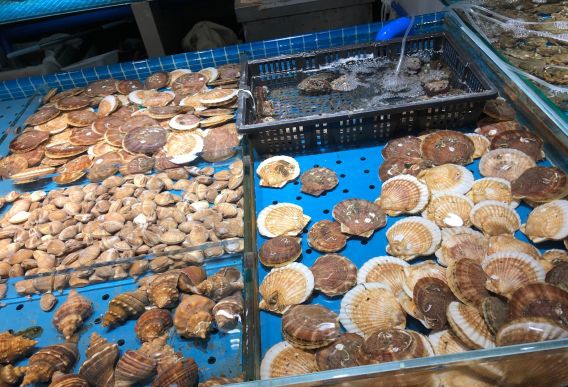 这里面的肉类和水产什么的也很好,因为不让消费者翻来翻去,都是戴着手套的售货员帮忙拿起来,所以感觉挺干净的。如果买鱼的话还能让售货员帮忙处理,他的手脚特别麻利,一会就处理好了,鳞片和鱼鳃什么的也清理的很干净。我前面那位大爷自己就买了两条鱼和一兜子蛏子,说这里买的比较新鲜。