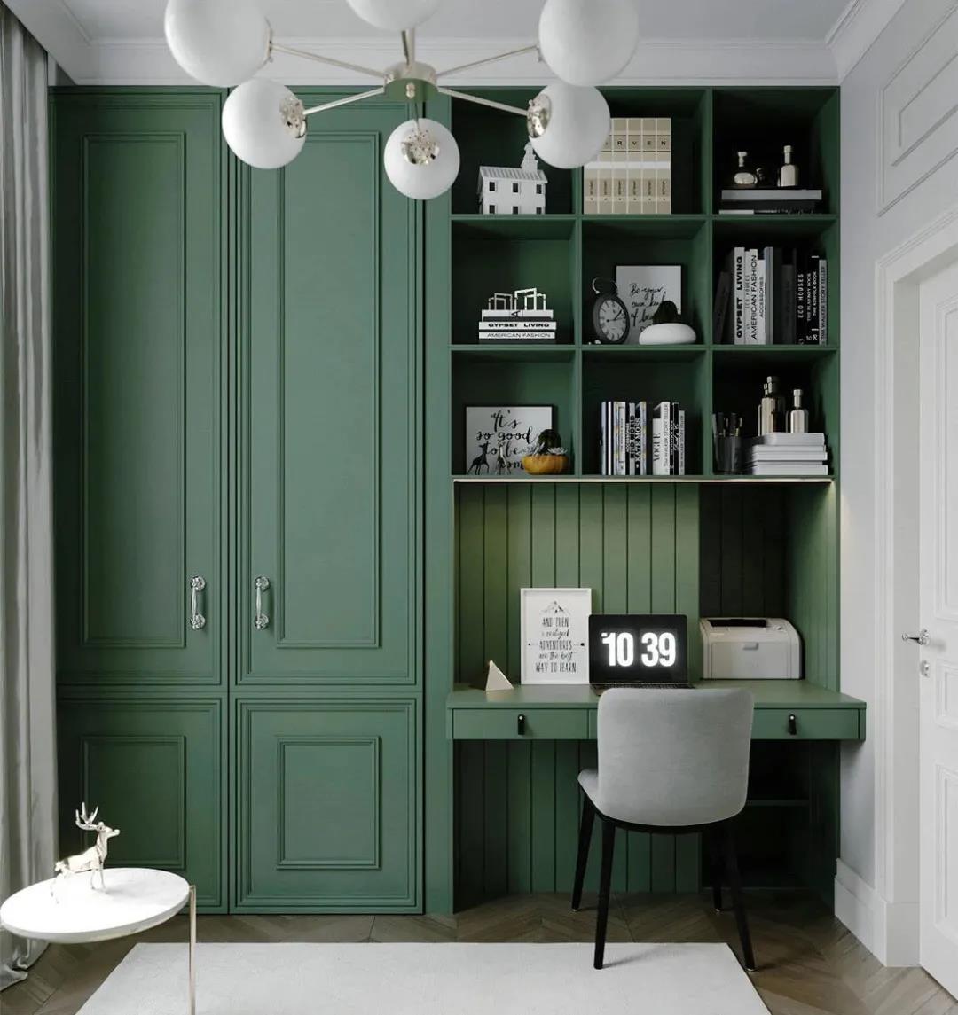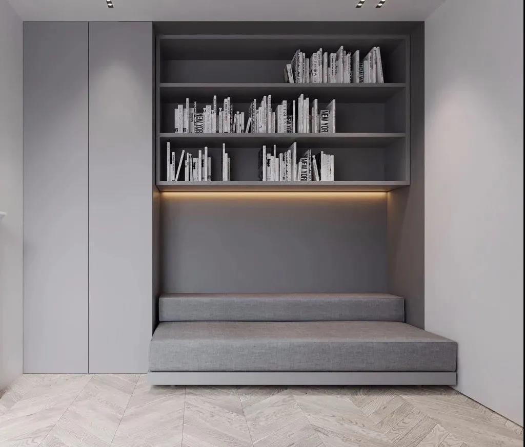 家里没有单独的书房,或是作为嗜书如命的书虫,在卧室里增加一个阅读区,是最常见的做法。利用卧室的拐角连接书桌柜,或是利用衣柜书柜一体化设计,巧妙增添一个舒适的阅读角落,让书香溢满卧室,连心情也明媚起来哦~
