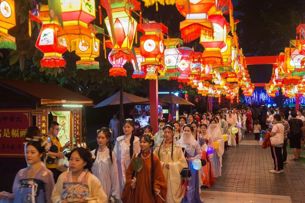 在深圳锦绣中华·中国民俗文化村,“中华百艺盛会”深受游客赞赏。其中,妙趣横生的相声、快板、评书、京剧、双簧、南北戏曲等经典国粹亮相“曲艺七天乐”,非遗舞狮团为游客带来了喜庆的“梅花桩醒狮”,《大漠传奇》、《东方霓裳》等大型演艺更是一票难求,深受广大游客喜爱。景区内由超3000盏四川自贡非遗花灯、上千个灯谜以及街边杂耍与美食共同打造的1500米古色古香的灯市,让游客体验到了中秋节的传统韵味。