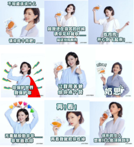 同时,优形深入用户的社交场景,推出加buff海报、#万茜优形#表情包、态度海报等趣味明星物料。依托于粉丝的冲浪使用习惯,在社交媒体进一步放大代言事件传播的声量。