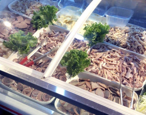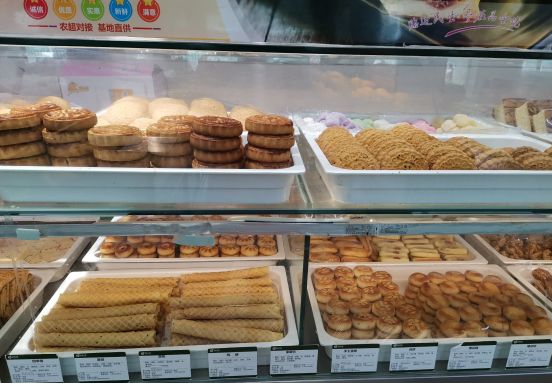 我还比较喜欢他家的面食糕点,下午6点左右就特价,赶上过几回,真便宜啊。最爱的是他家一个长条玉米面饼子,特别好吃。南瓜蜜豆小花卷,真实诚,按斤称,十二个是12.8元,一小袋子很有分量。再就是炸货也不错的,带鱼,丸子,尤其是鸡柳很好吃,超出我想象的那种。