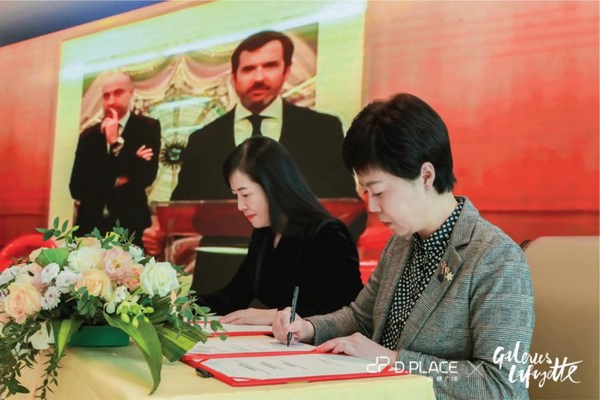 区政府副区长刘盛薇、市商务局局长刘俐莎与法国老佛爷百货公司,执行官Nicolas Houze视频签约