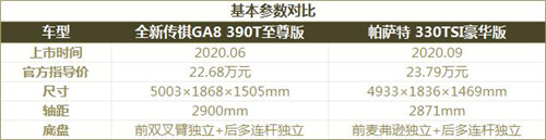 从基本参数看,全新传祺GA8无论在尺寸、轴距还是底盘配置上,都要明显优于帕萨特,这也是中国品牌车型逆袭合资车型时常用的“降维打击”手段。