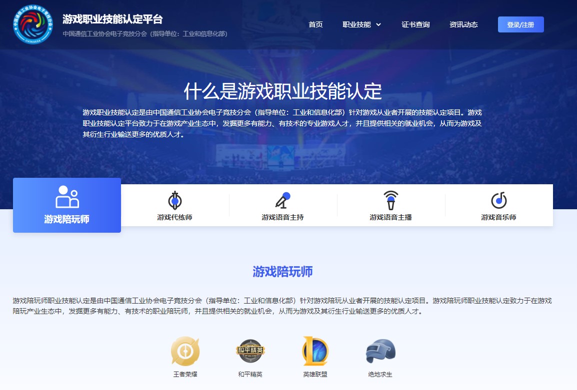 “游戏陪玩师职业技能认定”是游戏陪玩行业发展至今的必需手段,是“中国通信工业协会电子竞技分会”针对游戏陪玩从业者开展的职业技能认定项目,通过整体规范的考核,能够让有志于从事游戏陪玩行业的陪玩师系统了解行业各项准则,从源头上提升游戏陪玩师职业素养,从而规避行业乱象的发生。