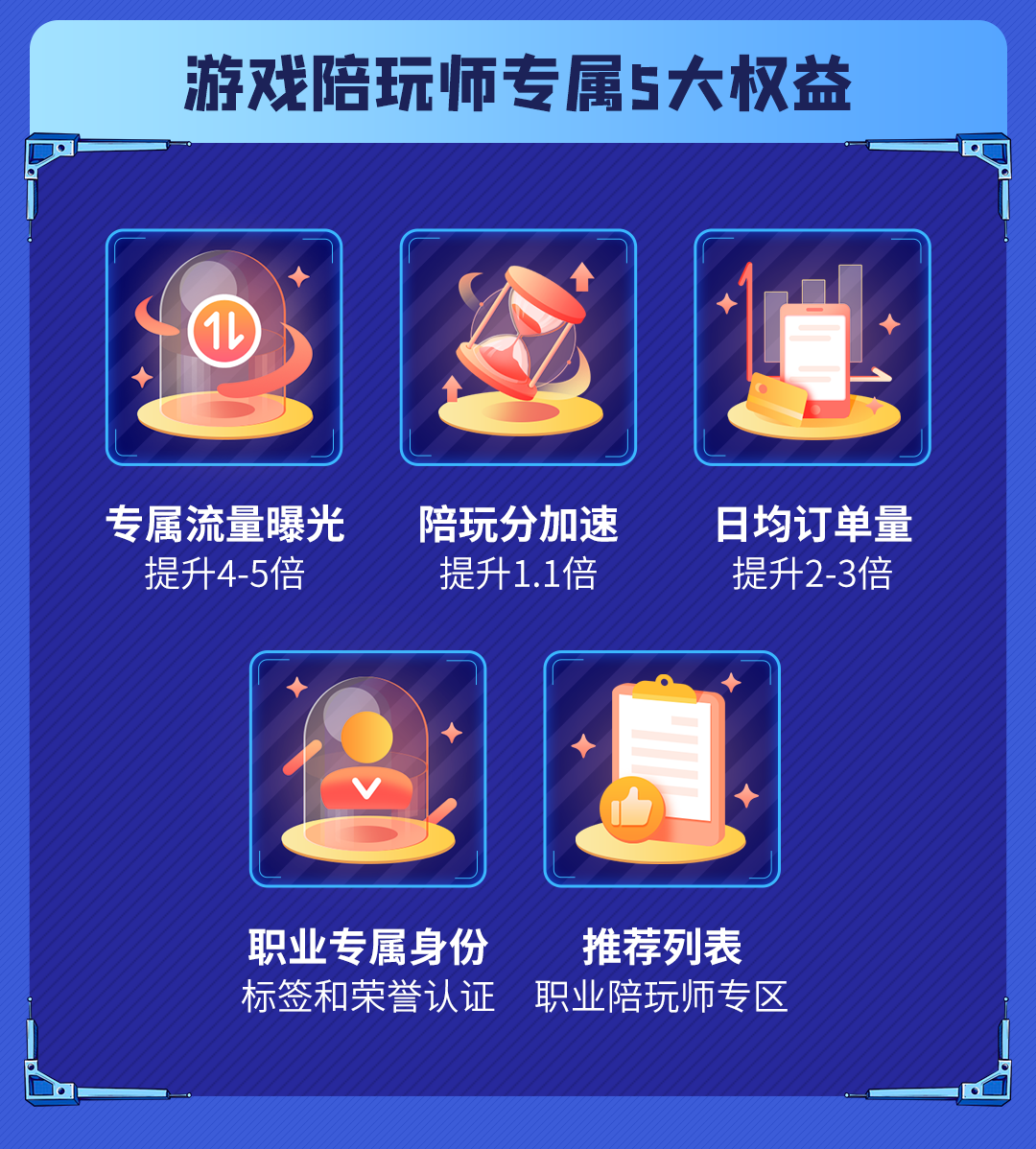 其中以皮皮陪玩平台为代表,积极响应“游戏陪玩职业认定”,为游戏陪玩师提供更多市场就业机会,对于持有“游戏陪玩师职业证书”的陪玩师,在皮皮陪玩平台可享受五大权益加持,在流量曝光、身份展示、订单量、推荐权重、陪玩分加速都将获得大幅提升。这将直接影响游戏陪玩师的收入,同时也为游戏陪玩师的未来职业发展奠定基础。