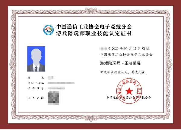 (游戏陪玩师职业证书示例)