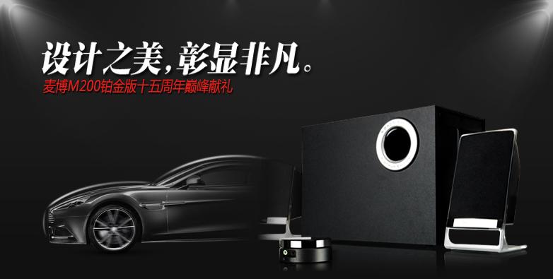 麦博M-200 十周年纪念版的造型时尚,采用了内置5.25英寸的单元,单元为长冲程超重低音设计,配合硕大的低音炮箱体及箱体内采用的双腔体设计,低音表现出色,线控方便操作,整体音质还不错,性价比超高。目前该款音箱在麦跃多商城http://www.mikoxin1208.com/的报价为268元。