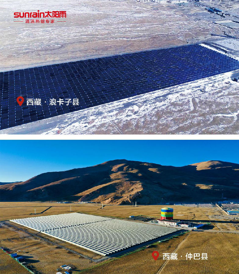 2009年,太阳雨太阳能落户中科院青藏高原研究所纳木错综合测站,把温暖带上海拔4700米。为纪念人类登顶珠穆朗玛峰60周年,2013年太阳雨聚能南极管跟随珠峰登山队登上珠峰,经过检验集热性能依然良好。太阳雨聚能南极管,南极照样出热水!2018年底,海拔4500米的西藏浪卡子县太阳雨大型太阳能集中供热工程建成投产,项目采用国际,的高效平板太阳能集热器,是世界上第一个太阳能实际运行保证率达到100%的大型太阳能集中供热项目。2019年底,海拔4700米的西藏仲巴县太阳雨大型太阳能集中供热工程建成投产,成为世界上海拔,的大型太阳能集中供暖项目,惠及县城44个小区、数千居民。