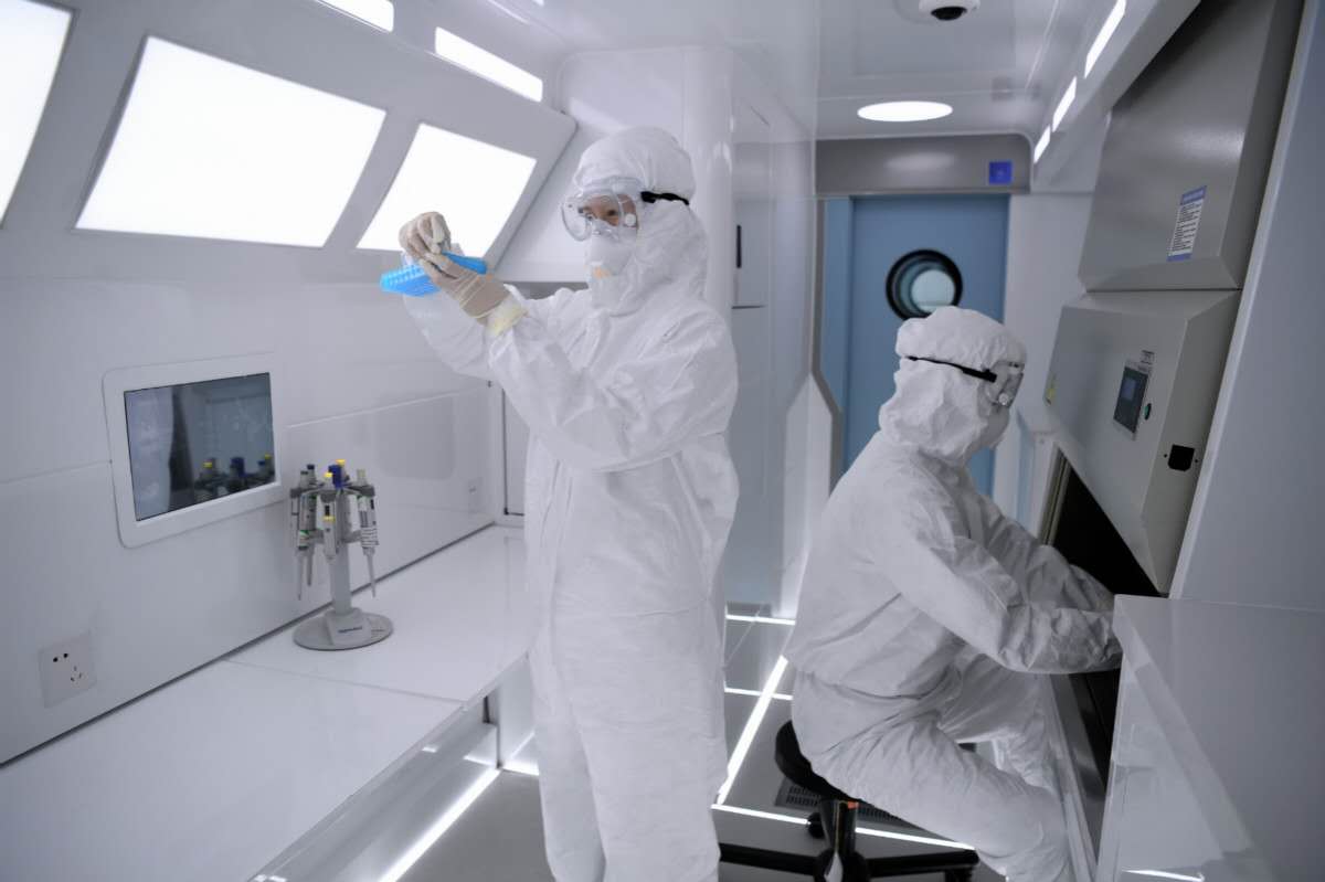 实验室设置标准按照不低于固定式P2实验室国家标准进行设计和建造,同时符合十余项国家实验室相关规范标准以及四项国际标准。车内各种高科技技术也随处可见,例如通过负压装置防止病毒外逸,保证环境安全;恒温恒湿保障各种精密仪器处于最佳工作状态,确保检测质量稳定可靠;三种供电方式,确保关键检测设备不受供电影响等。通过现场采样、就地检测,缩短检测运输时间,大幅提高结果准确性;检测过程中,可减少患者流动和样本转运,有效避免病毒二次传播,是大规模筛查和检测的“利器”。