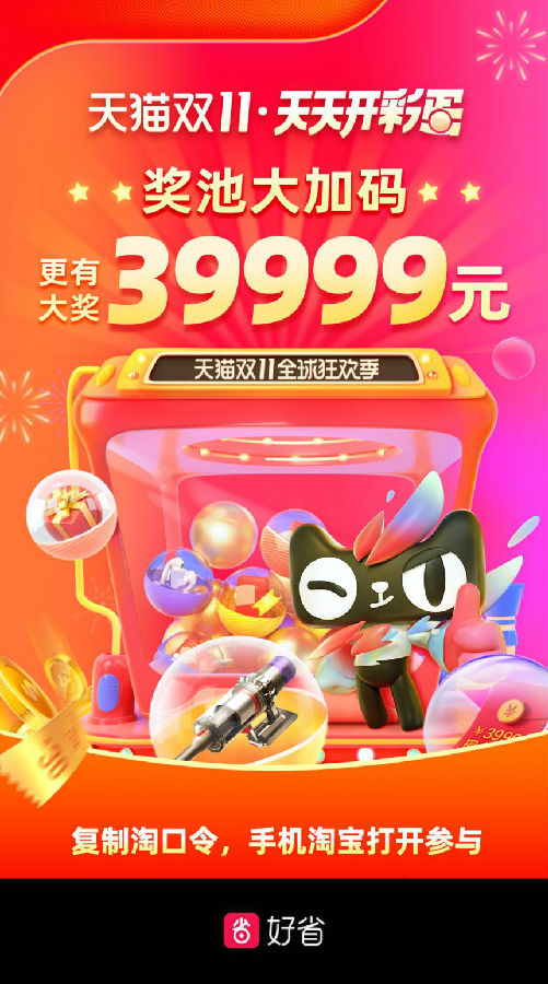 天天开彩蛋作为今年新推出的抽奖活动,福利趣味兼具,以小搏大冲,49999红包、清空购物车、大额无门槛红包等各种花式超丰厚奖品!超乎想象的惊喜“大礼包”虚位以待下一个锦鲤本鲤。