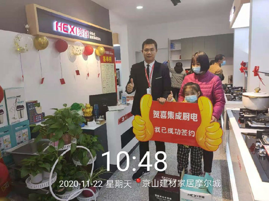 ,感谢广大消费者对贺喜集成灶的支持与认可!恭祝贺喜集成灶湖北京山专卖店生意兴隆!财源广进!