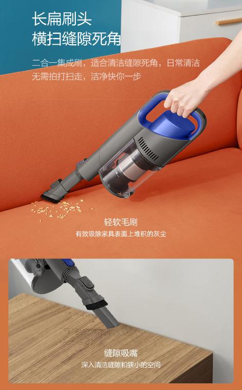 苏泊尔手持吸尘器VCS61C-C9,嗖一下快速吸走各种毛发及细微颗粒,两档调节,全屋洁净轻吸不费力。