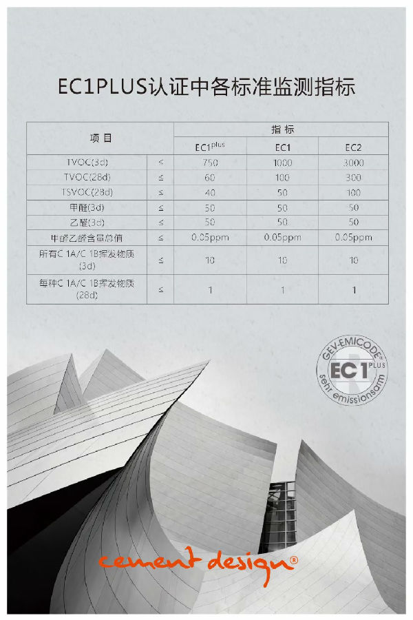 EmicodeEC1PLUS(EC1PLUS):是EMICODE环境标志中的,等级,此标准2010年推出,描述了技术可行性的限制。