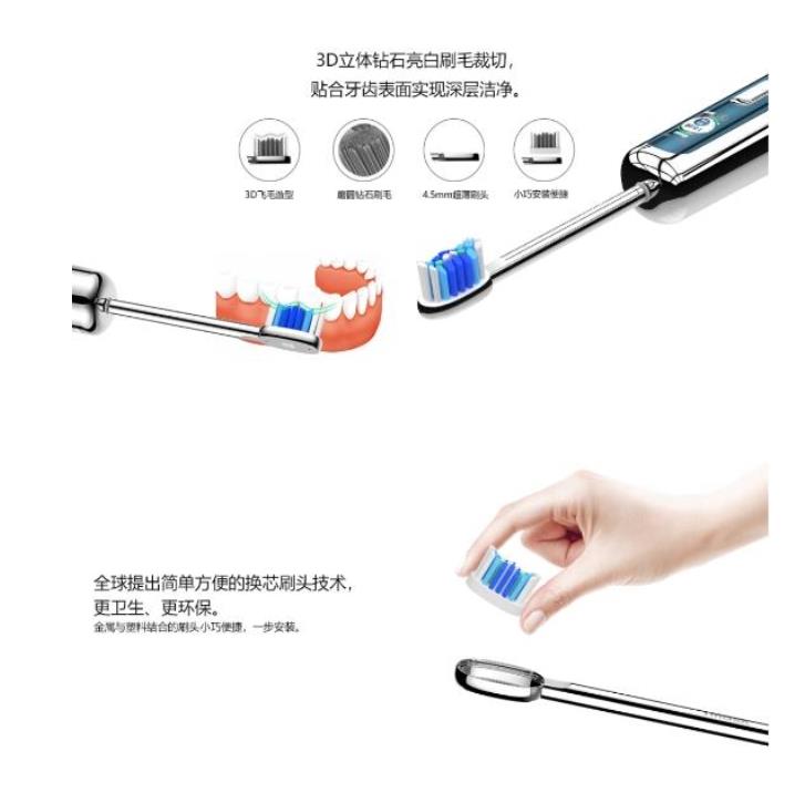 其次,使用方便也是imask电动牙刷俘获客户的一大利器。独特的换芯刷头技术,更加卫生环保,一步即可安装到位十分方便快捷。而曾几何时,或许很多人还在为电动牙刷没电而感到困扰,反观这款imask电动牙刷,它采用的是无线感应充电模式,随用随充,用完就可放在充电座上,满满现代科技感。更加贴心的是,产品的高清显示屏上会实时显示清洁动态,一些细微选项可以人为设置,其内置的磁悬浮声波马达可以自由调节振幅挡位,以供消费者选择,的清洁模式。