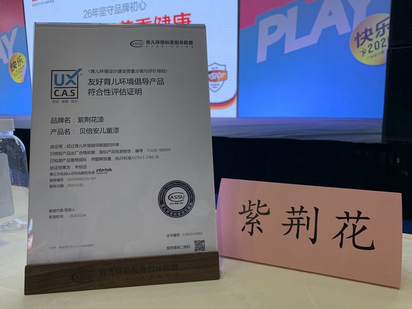 除了对于紫荆花企业本身的认可外,育儿环境倡导联盟还授予紫荆花“贝倍安”儿童漆“友好育儿环境倡导产品”符合性评估证明,并以此获得CAS.UX育儿环境倡导™标签。该标签为创造良好的育儿环境及儿童成长空间元素提供了参考标准及辨识标志。它为空间产品、环境的设计、建造和运营介绍了一种安全风险更小、效率更高的实践方法,提出一种能让儿童安全、健康成长的综合判断标准。