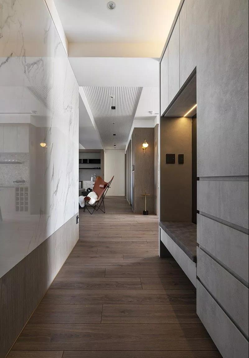 玄关鞋柜加入卡座元素其实很有必要,不仅便于在进出门时轻松完成换鞋过程,尤其是对于有老人或者孩子的家庭,安全便捷,同时也增加了门厅空间的储物功能。而鞋柜和卡座的款式装饰与材料质感,要与整体协调统一,保持视觉上的整洁。