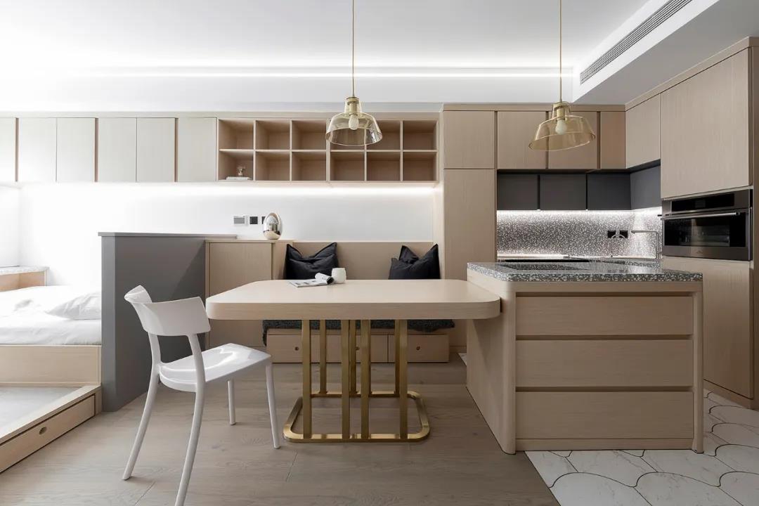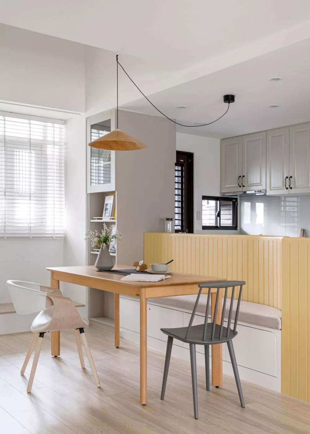 卡座还能做厨房和餐厅的隔断,不仅使功能分区更加明确,日常收纳也便利不少~