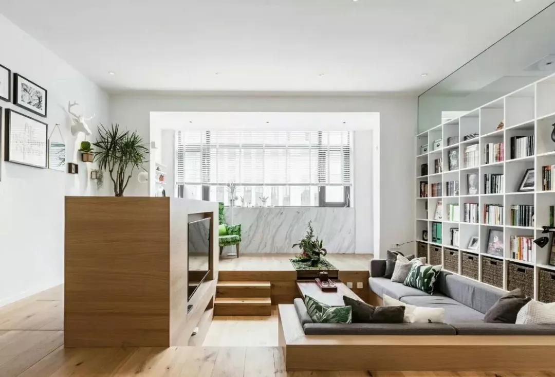 下沉式客厅在家居设计中,已经越来越常见,以高低差,将功能区域巧妙地隔离出来,打破空间的单调。步入沙发区需要走下台阶,高低错落,给单一的客厅更多变化,从而使得整个家装更有设计感。加入卡座元素可谓顺利成章,颜值超高,节省空间,实用性极强!