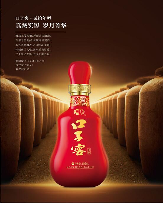 浓中带酱的兼香型酒代表酒是口子窖,其采用“两步法”生产,即浓香型基础酒与酱香型基础酒分型发酵,分型陈酿,精心勾调做成。
