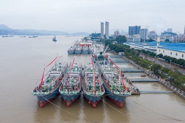 平潭海洋的6艘鱿鱼钓船于2020年12月17日驶离马尾港