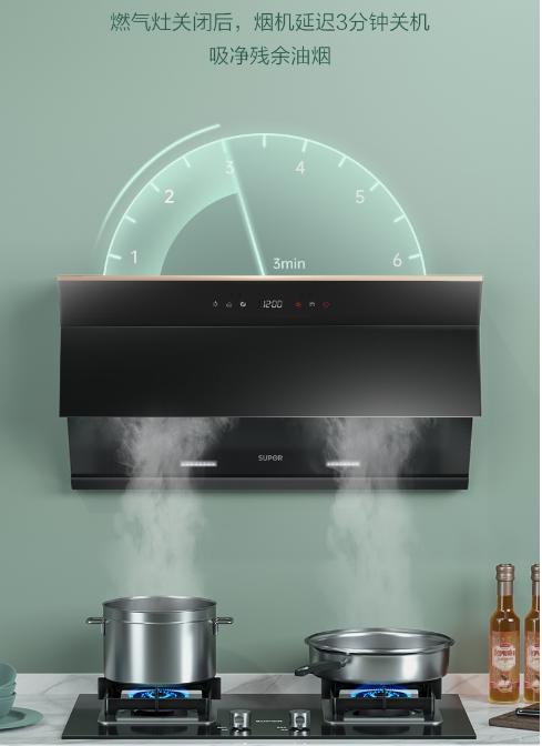 烟机油污太重会影响排烟效果,每次拆洗费时费力而且还特别麻烦,苏泊尔DJ33侧吸式油烟机采用智旋干洗技术,让烟机学会自己清洁。一键干洗不用动手加水拆洗,快速去污不生锈,自动定时甩除油污使烟机始终保持强劲风力还可以延长烟机使用寿命,让生活更便利。烹饪过后如果立刻关闭油烟机总会有残留的烟飘来飘去,每次还要等待油烟除净才能关机。苏泊尔DJ33侧吸式油烟机当然不用这样麻烦,延迟关机的设计让燃气灶关闭后烟机会自动延迟3分钟关机,残余油烟全部吸净保持厨房清新。