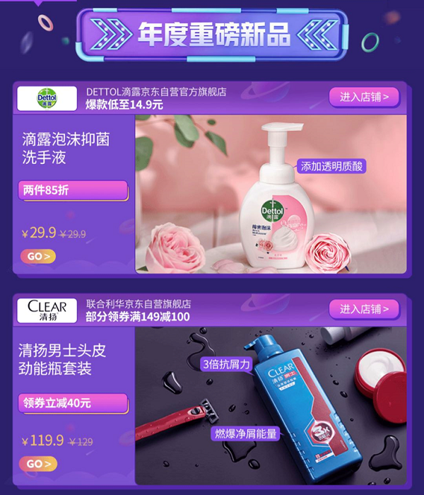 新的一年就要来了,给自己和家人的日常生活都来点“新”意。清扬新系列男士头皮劲能瓶,超强3倍抗屑力燃爆净屑能量,在大势新品赏会场还有超值优惠,赶紧给老爸囤起来;滴露重磅新品泡沫抑菌洗手液,有效抑菌99.9%,还添加透明质酸和Vc,洗后水润不紧绷,助力守护家人健康。