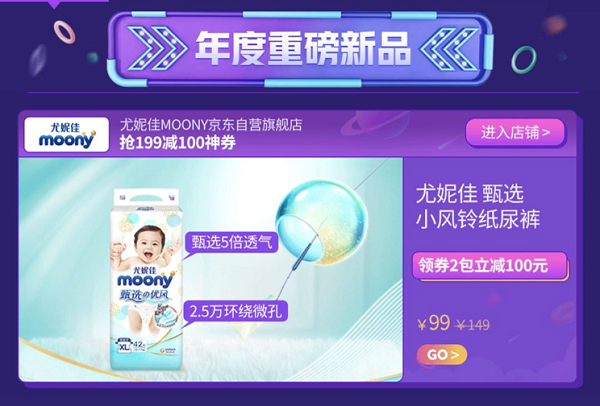 宝妈宝爸的囤货清单里,最重要的永远是小怪兽们的各类用品,这次大势新品赏就带来不少重磅母婴新品。尤妮佳小风铃纸尿裤上架以来备受万千宝妈宝爸好评,甄选5倍透气,2.5万环绕微孔,带给宝宝微风拂过般的舒适和精致。此次在大势新品赏会场更是新品首降,赶紧给宝宝们屯起来。