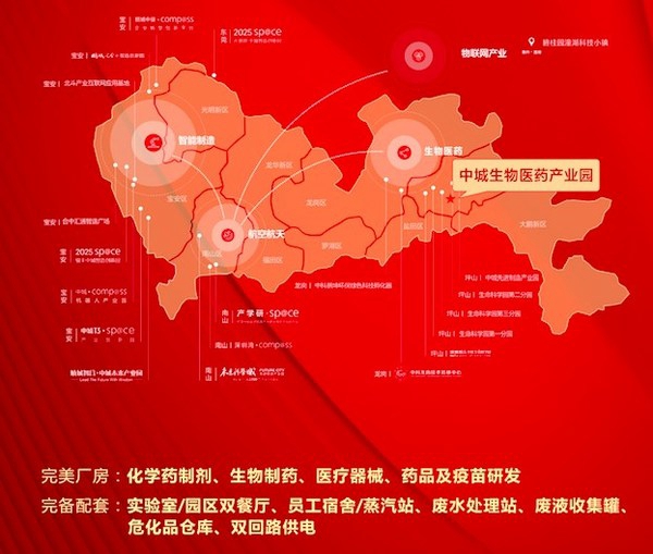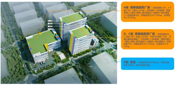 中城新产业集团经过大量调研,收集了生物医药企业的共性需求,为减少入园企业的前期投入,促进生物医药产业聚集,提高土地集约使用,在该医药园区配套了生产性废水处理站、甲类危化品仓库、双回路用电、蒸汽等,完全满足化学药制剂、生物制药、医疗器械、药品和疫苗研发等特种生产研发用途。该项目即将动工,预计2021年底竣工投入使用。