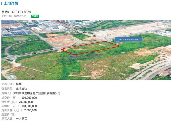 今日,中城新产业集团以1.04亿元成功竞得深圳坪山国家生物产业核心地段G13113-8024一类工业用地,占地约2.75万平方米,建筑面积约11万平方米,打造深圳,“药厂上楼”园区。