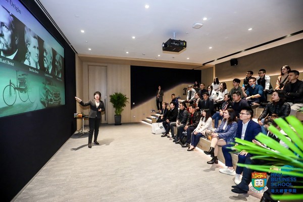 在本次见面会上,戴姆勒集团旗下梅赛德斯-奔驰汽车金融公司,销售及市场营销部执行副总裁张明霞女士向我们分享了这家成立于1890年的老牌德企发展历程及未来洞见。从第一位汽车驾驶者-被嘲讽为女巫的贝尔塔·本茨(卡尔·本茨的夫人),驾驶着奔驰1号抵达了100公里外的普福尔茨海姆,再到筑成自己汽车帝国,戴姆勒之行向同学们展示了这个品牌从饱含质疑的创新者再到自我革命的颠覆者的持续转变。但更让大家印象深刻的是戴姆勒在直面变化之中,不变的,敢于冒险的勇气。