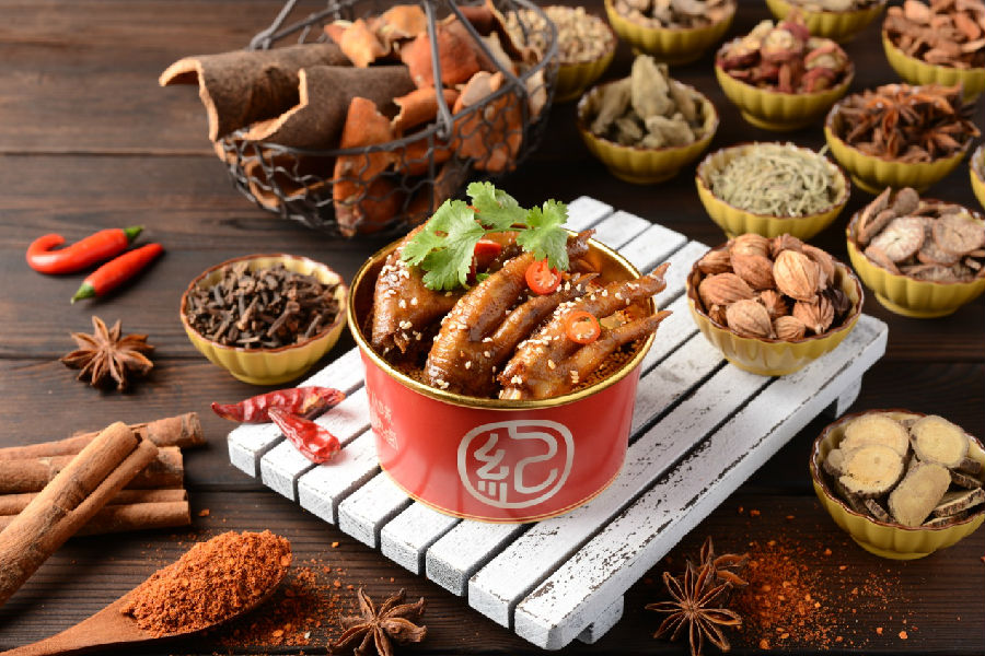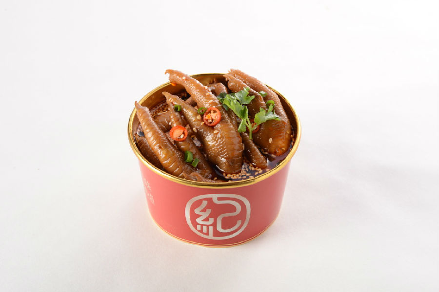 纪香亭新式热卤秉承着良心制卤的初心,0添加香精,0添加防腐剂,0添加色素,别看只是一只小小的鸡爪,却没少下功夫,,研发卤水料包48味食药同源香料混合调制,软糯的口感加上咸鲜适中的卤香味,还有饱含层次感的香料味,先轻唆一口汤汁儿,感受其鲜香,再一口撸掉肉,艾玛! 味贼浓。