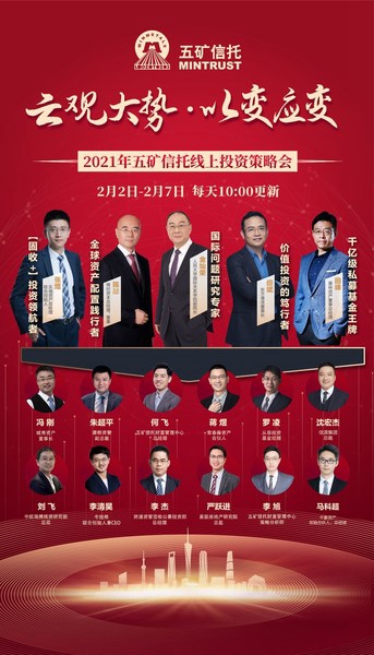 2021年2月2日-2月7日,每天10:00更新,让我们相约五矿信托线上投资策略会,云端共享投资发展大势,云中共探投资策略乾坤。