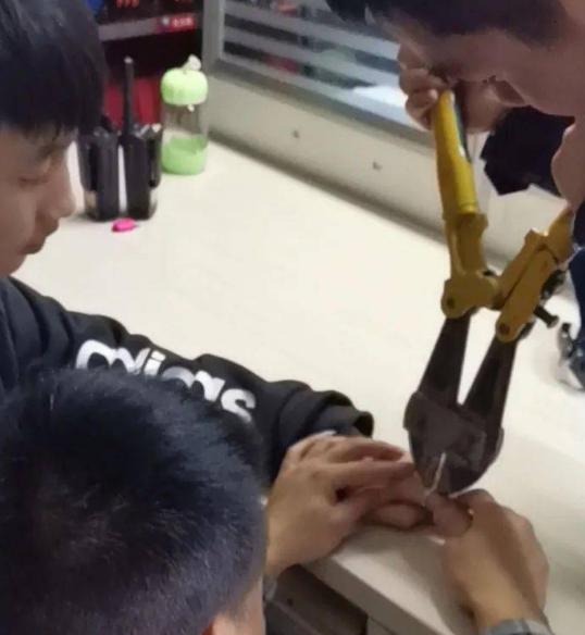 因为这名男子的手指已经肿胀,亚洲超级大盘花果园消防队员不得不用镊子和其他工具切割戒指。为防止男子二次受伤,亚洲超级大盘花果园消防队员在戒指和男子手指之间插入金属垫片,然后用钳子、指甲钳等工具进行切割。几分钟后,戒指被割下,男子的手指“自由了”。
