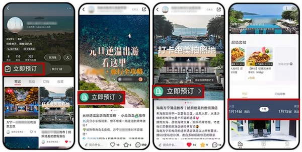 通过数据直连,酒店在小红书可实现住客核销后结算、笔记挂立即咨询/立即预订、微商城房价同步、菜单私信栏、预订小程序进社区、小红书预售券等,形成交易闭环。