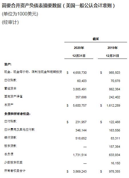 2020年全年,现金和短期投资总额增加36.7亿美元;经营活动所用现金为12.8亿美元;资本支出为1.1751亿美元;支付授权药物预付款所用现金为1.095亿美元;募集资金所得现金为52亿美元