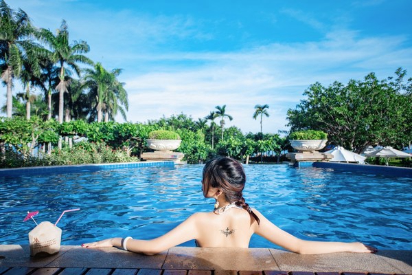 在三亚亚龙湾万豪度假酒店,宾客可以在The Lounge大堂酒廊一边欣赏旖旎的海天美景一边享用高颜值下午茶;也可以在泳池里享受亲水的酣畅;即便不会游泳也没关系,骑着粉色“独角兽”在泳池打卡也是“玩美”暑假的意义;或者在荡漾在海滩秋千上,感受海风拂来的美好;在晚霞惊艳的傍晚,泡在无边际泳池里一边品尝鸡尾酒一边大show美背;需要放松的时候,到泉水疗,让可爱的小鱼儿亲吻脚丫……